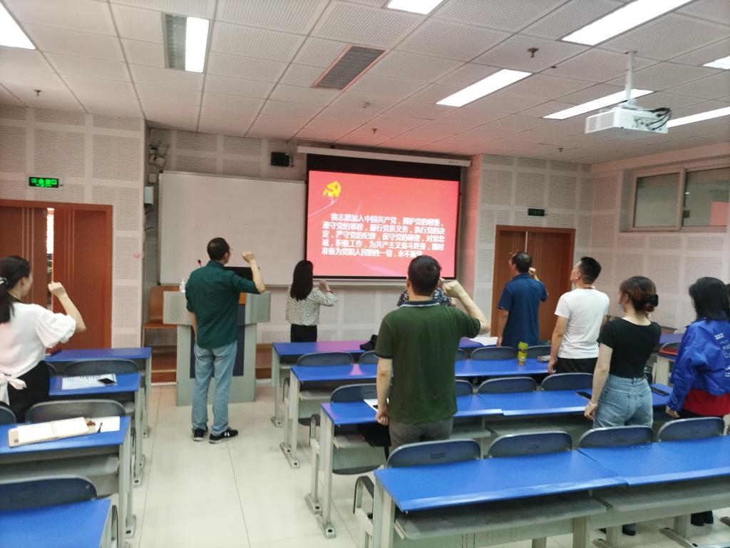 教工支部为入党时间在3月份的党员庆祝“政治生日”。陈迁、韩非、宁群等三位党员回忆了各自的入党初心及入党以来的感悟,表示要在今后的工作中,增强身份意识,更加奋发作为,不负共产党员的光荣称号。教工支部书记刘宇同志代表支部向三位党员致以生日的问候和祝福,希望他们注重党性修养,增强党员意识,不负党的重任,践行入党誓词,彰显共产党员的先进本色。陈迁带领全体党员重温入党誓词。