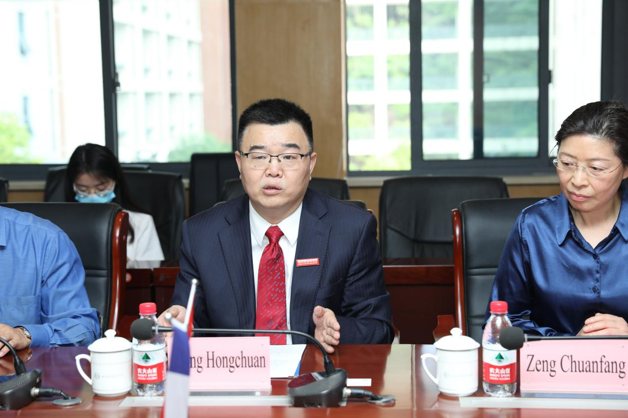 董洪川董事长对戴宁智总领事一行的到访表示热烈欢迎,并就川外的办学历史、学科专业设置、国际合作与交流,尤其是中法物流管理项目做了简要介绍。他表示,公司历来高度重视法语专业建设以及与法国高校合作项目的发展,将一如既往地助力中法合作平台的搭建,如推动中法供应链管理中心在川外落地。希望双方共同推进中法在教育人文方面的交流。